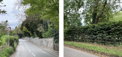 Strong rural approaches into village lined with hedgerows, grass verges and mature trees and former parkland around Colston Hall.