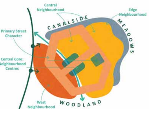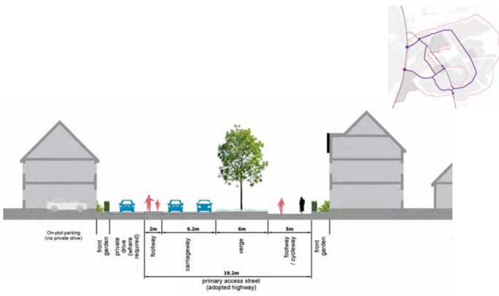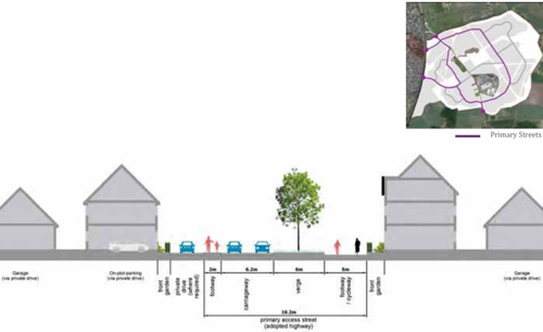2. The development should make efficient use of land. New residential should seek to achieve an average net density of at least 30 dwellings to the hectare. Higher densities can be achieved in the central core of development, Primary and Secondary Streets and close proximity to the neighbourhood centres. Densities across the site should consider if it would adversely affect heritage assets and their setting.
