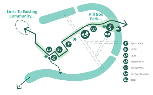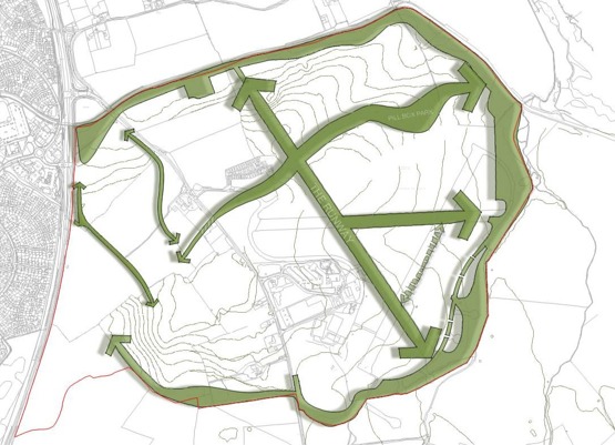 - Improvements to walking, cycling and public transport links through and beyond the site, including where necessary enhancements to existing bus services;