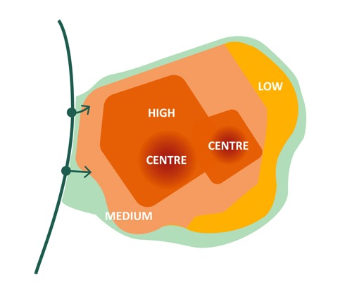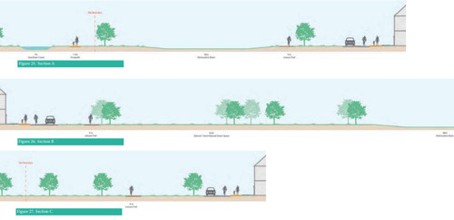 - Although street corridors are fixed in scale, the detailed design of streets will need to be explored in greater detail in parallel to the consideration of the access and movement requirements, and optimal development block dimensions.