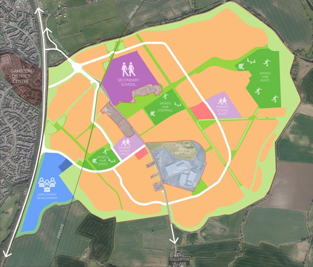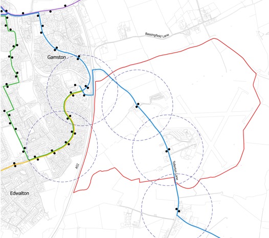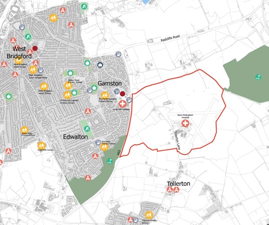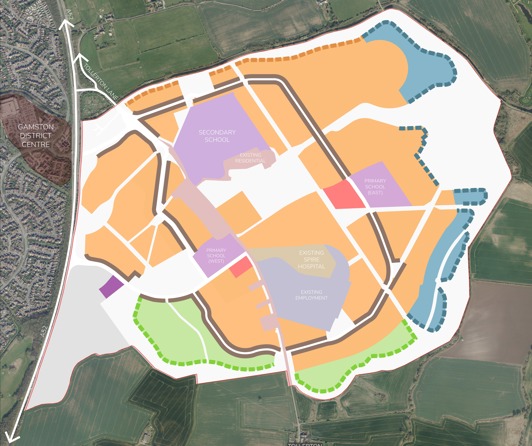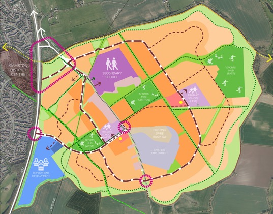 - Community facilities and retail development of an appropriate scale will be provided to serve the new development. On site community facilities should primarily be located within or adjacent to the neighbourhood centre. Where appropriate, enhancements to existing community facilities at Gamston Neighbourhood Centre and within other adjacent villages will be explored as an alternative;
