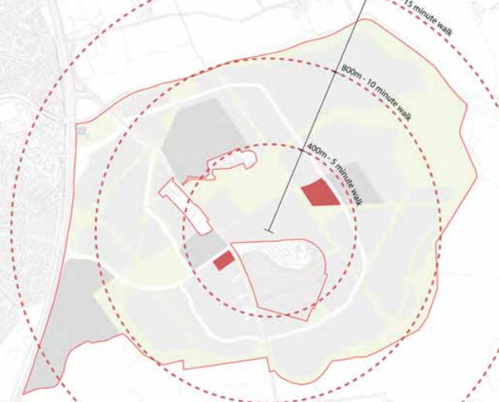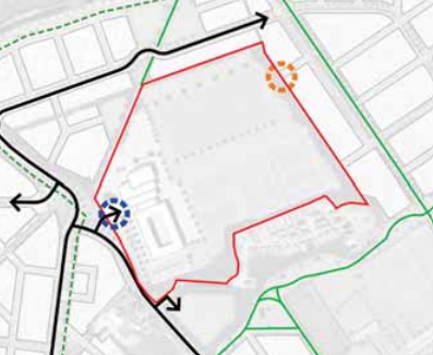 1.23. The site boundary for this policy is identified by the red line. Figure 4 shows the indicative distribution of proposed uses, which has been taken into consideration in the preparation of this SPD.