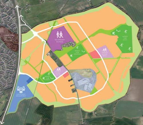 1.24. Policy 25 seeks mixed-use development including around 2,500 dwellings up to 2028, up to a further 1,500 homes post 2028, around 20 hectares of employment development, a neighbourhood centre and other community facilities as appropriate.