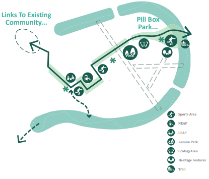 - Likewise, whilst the location of the green and blue infrastructure is fixed for the wider site, the locations within development phases and the exact design of these spaces (including their boundaries) is subject to detailed design that will be considered in line with adjacent development parcels, streets and active travel routes.