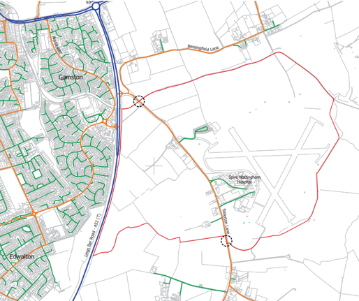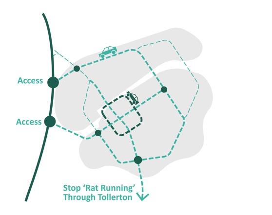- Measures as necessary to directly access the Gamston A52(T) Lings Bar Road and to minimise traffic impacts through Tollerton village;