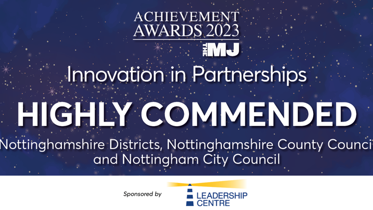 A trailblazing Nottinghamshire partnership has been highly commended in the Municipal Journal (MJ) Achievement Awards for Innovation In Partnerships.
