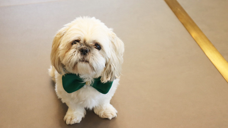 She is among the first comfort dogs at a crematorium in the country, bringing smiles to faces with her trademark green bow tie to spread a heart-warming feel to people at sensitive times.
